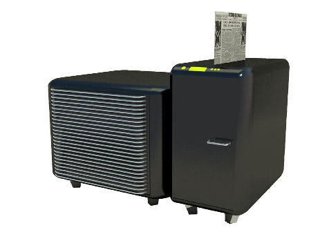 The solution was a recycling-on-spot paper machine, requiring simple already known technologies: a shredder, a blender and a small water pump to fill the drawers.