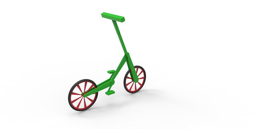 The goal was to create a bicycle for kids that could be built by 3D-print pieces of recycled plastic. It should also fit a box of 60x60cm.